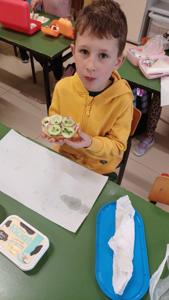 Dzieci z klas pierwszych poznawały literę "j" i wykonywały kanapki z wykorzystaniem różnorodnych produktów, w tym ugotowanych na twardo jajek.Na zakończenie pracy posprzątały stanowiska i z radością spożyły przygotowane przez siebie "kolorowe dzieła". Zapraszamy do galerii zdjęć.
