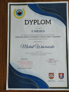 Miło nam poinformować, iż uczeń klasy VIII b naszej szkoły - Michał Wnorowski - zajął II miejsce w swojej kategorii wiekowej w Powiatowym Konkursie Plastycznym "Kardynał Stefan Wyszyński w oczach dzieci i młodzieży" organizowanym przez Szkołę Podstawową w Kuleszach Kościelnych oraz Starostwo...