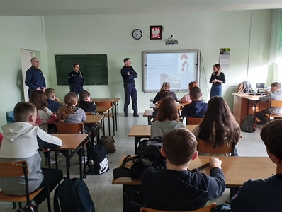 W dniu 7 marca br. uczniowie klas VIII uczestniczyli w spotkaniu z przedstawicielkami Komendy Powiatowej Policji w Wys. Maz. Celem spotkania było przede wszystkim przybliżenie zawodu policjanta oraz wymagań jakie trzeba spełnić, aby ten zawód zdobyć. Spotkanie odbyło się na sali gimnastycznej...
