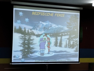 W dniu 13 stycznia br. odbyło się w naszej szkole spotkanie uczniów klas I-III z przedstawicielami Komendy Powiatowej Policji w Wys. Maz. pod hasłem "Bezpieczne ferie 2023". Podczas spotkania omówiono podstawowe kwestie dotyczące bezpieczeństwa podczas zabaw i sportów zimowych...
