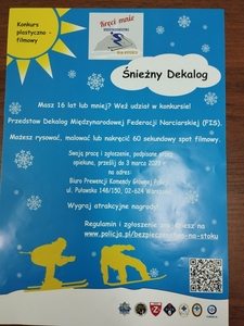 Komenda Powiatowa Policji w Wys. Maz. zachęca do wzięcia udziału w konkursie plastyczno-filmowym na zilustrowanie Dekalogu Reguł Międzynarodowej Federacji Narciarskiej FIS pod nazwą „Śnieżny Dekalog”. Konkurs adresowany jest do dzieci i młodzieży. Organizatorem konkursu jest Biuro...