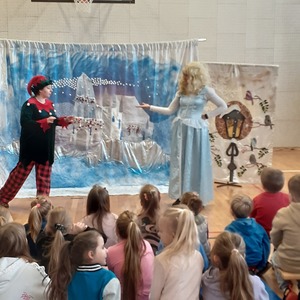 Dzięki rodzicom 20 stycznia 2023 roku uczniowie klas I-III oraz dzieci z Przedszkola miały okazję zobaczyć występ aktorów teatrzyku objazdowego pt.: „Klejnoty Królowej Śniegu”. Przedstawiona bajka miała podtekst ekologiczny. Figlarny skrzat, który podstępem dostał...