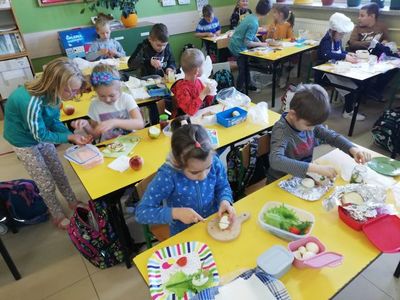 Dnia 7 października dzieci z klasy pierwszej utrwaliły poznaną literę "j" i wykonały kanapki z wykorzystaniem różnorodnych produktów, w tym ugotowanych na twardo jaj. Wszyscy obejrzeli i wysłuchali prezentacji multimedialnej na temat rodzajów jaj i właściwości zdrowotnych...