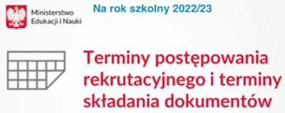 Drodzy Ósmoklasiści! W załączniku przedstawiamy terminy przeprowadzania postępowania rekrutacyjnego oraz postępowania uzupełniającego, w tym terminy składania dokumentów na rok szkolny 2022/2023 do szkół ponadpodstawowych w województwie podlaskim określone przez Podlaskiego...