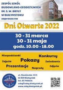 Dyrekcja Zespołu Szkół Budowlano-Geodezyjnych w Białymstoku zaprasza uczniów klasy VIII i ich rodziców do zapoznania się z ofertą edukacyjną przygotowaną na rok szkolny 2022/2023. Szczegóły w zamieszczonych poniżej materiałach: Strona internetowa szkoły: https://www.zsbg.bialystok.pl/ Ulotki...