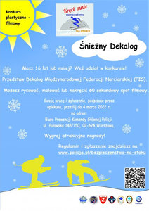 W ramach akcji "Kręci mnie bezpieczeństwo na stoku" Komenda Główna Policji organizuje ogólnopolski konkurs plastyczno-filmowy pn. "Śnieżny Dekalog", który jest adresowany do dzieci i młodzieży do lat 16. Warunkiem przystąpienia do konkursu jest nadesłanie do Biura Prewencji...