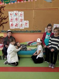 Klasa II przygotowała dla przedszkolaków inscenizację wiersza Jana Brzechwy pt. „Katar”. Po krótkiej pogadance uczniowie zaśpiewali także piosenkę pt.„Zatańczyły witaminy” nawiązującą do spożywania zdrowych posiłków, które wpływają na zwiększenie...
