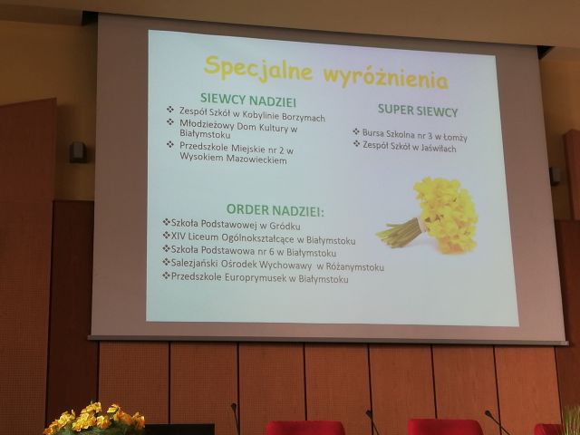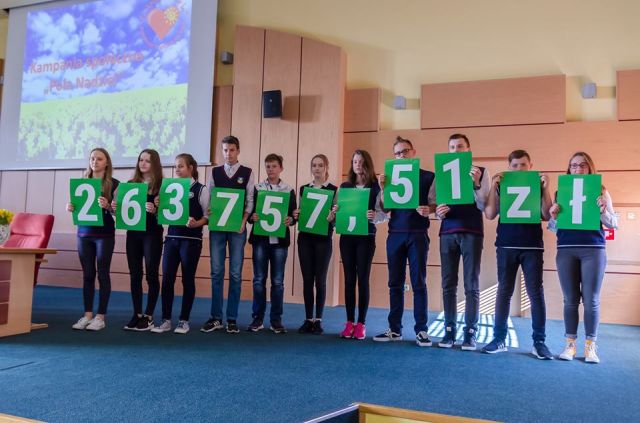 „Nadzieja jest ryzykiem, które trzeba podjąć” – te słowa francuskiego pisarza są mottem tegorocznej, dziewiątej już, edycji kampanii Pola Nadziei, która po raz kolejny dotarła do Białegostoku. W uroczystej inauguracji w środę 10 października wzięli udział nasi uczniowie z klasy IV A - Weronika Średnicka i Oliwia Poleszak.