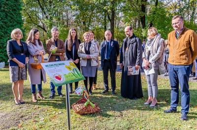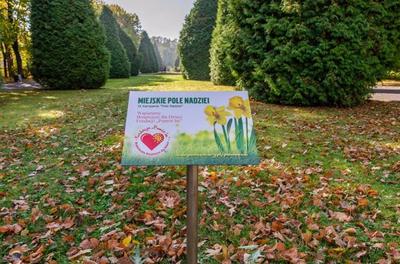 Uczestnicy spotkania na skwerze Lecha i Marii Kaczyńskich wspólnie posadzili cebulki żonkili. To tam wiosną przyszłego roku zakwitnie Miejskie Pole Nadziei.