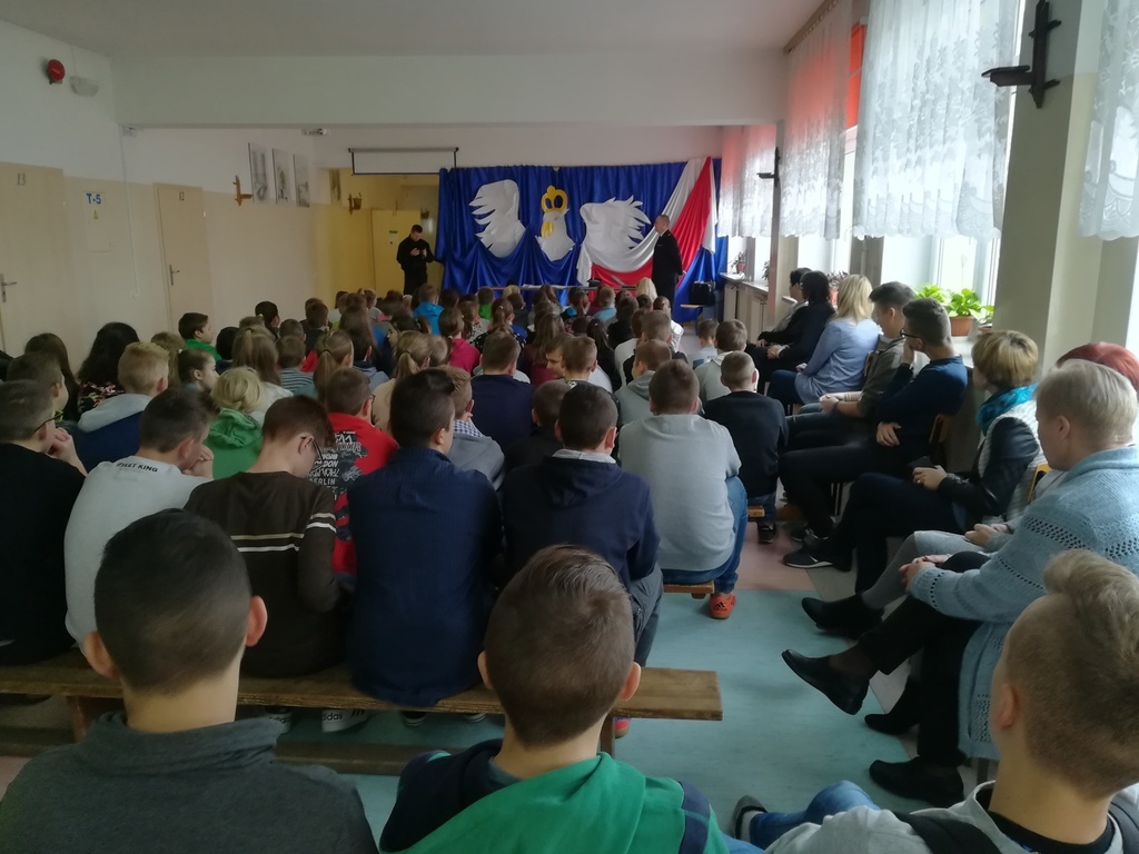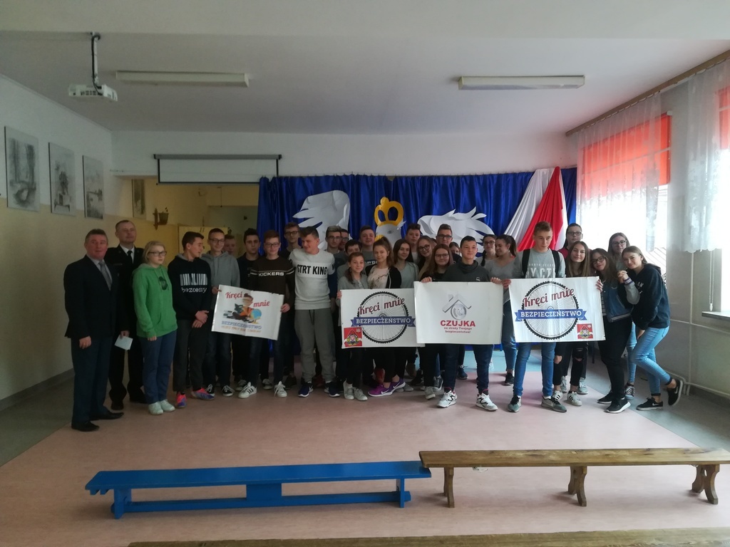 W dniu 8 listopada uczniowie klas V-VIII szkoły podstawowej i III gimnazjum uczestniczyli w spotkaniu z przedstawicielami Powiatowej Straży Pożarnej w Wys. Maz., podczas którego omówiono najczęstsze przyczyny pożarów w mieszkaniach i domach jednorodzinnych, zatrucia tlenkiem węgla oraz sposoby zapobiegania tym niebezpieczeństwom. Ponadto przypomniano młodzieży instrukcję udzielania pierwszej pomocy w sytuacjach zagrożenia zdrowia i życia.