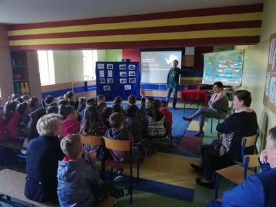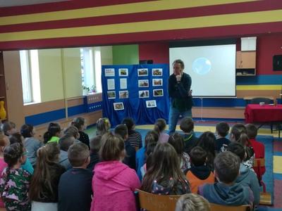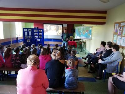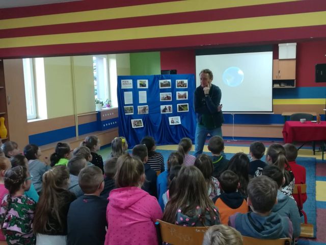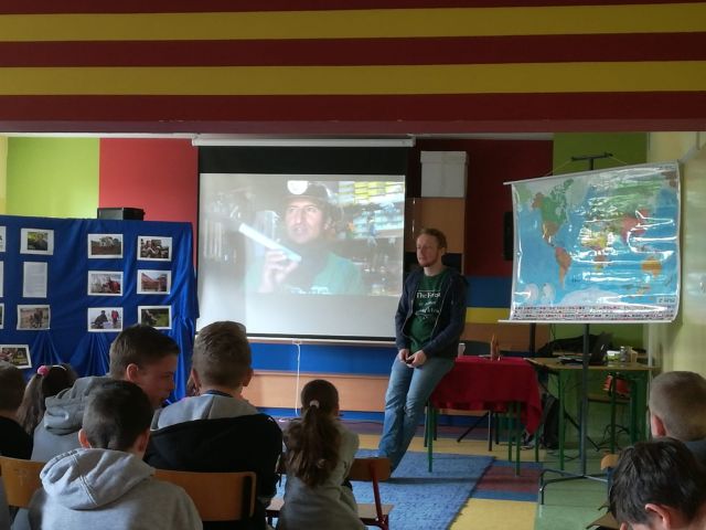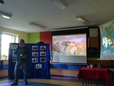 W spotkaniu brali udział uczniowie wszystkich klas Szkoły Podstawowej i III klasa Gimnazjum. Podróżnik przedstawił w formie multimedialnej swoje najciekawsze odkrycia i podróże. Uczniowie mogli zobaczyć, jak wyglądają prace badawcze fauny, lodu i klimatu na polskiej stacji polarnej na Antarktydzie. Poznali też wiele odmiennych kulturowo od Polski państw Ameryki Południowej  jak Argentyna, Chile, Peru, Boliwia i Brazylia oraz funkcjonowanie młodego 3-letniego państwa afrykańskiego Sudanu Południowego, które obecnie boryka się z wieloma problemami społeczno - gospodarczymi.