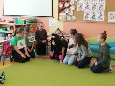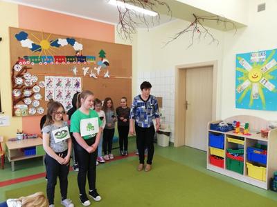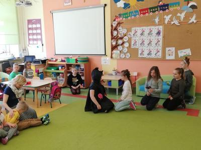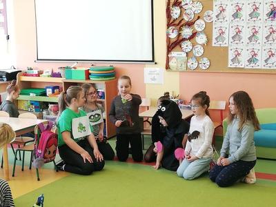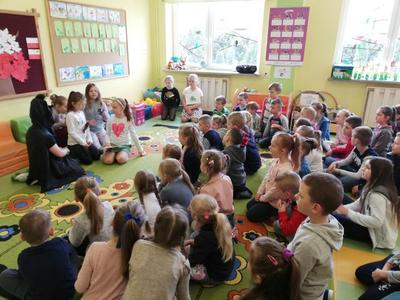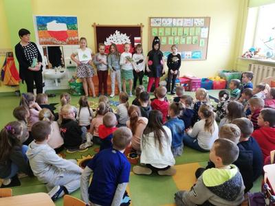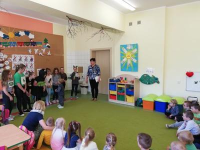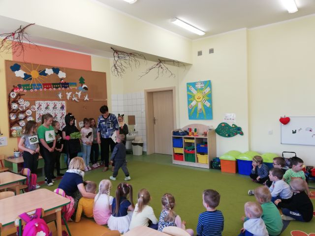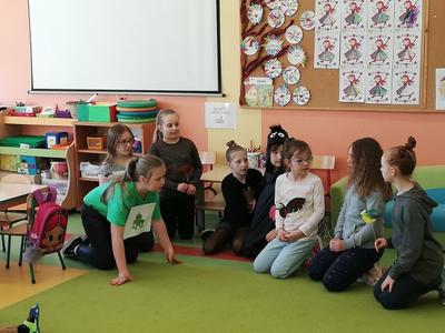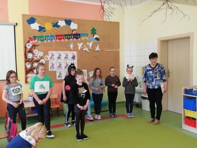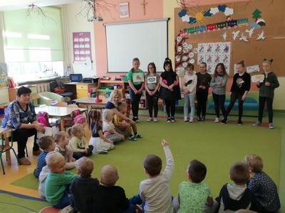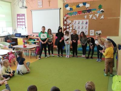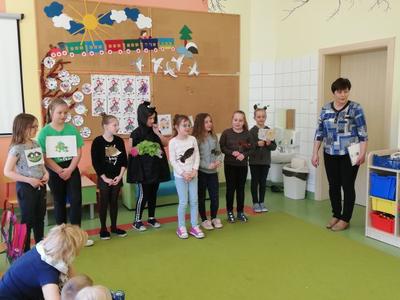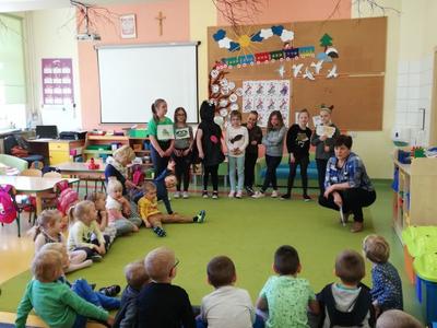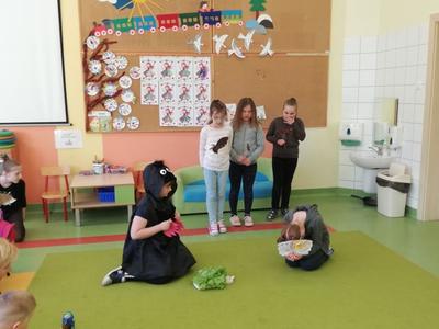 „Kto zjadł sałatę?” to tytuł przedstawienia Pawła Boręsewicza, wystawionego przez uczennice klasy drugiej dla grup przedszkolnych z naszej szkoły. Dziewczynki wcieliły się w role zwierząt, które można spotkać wiosną w ogrodzie. Starały się pokazać jak ważne są warzywa na przykładzie główki sałaty, którą przez pomyłkę zjadł kret. Pokazały również to, że kret powinien się wstydzić swego postępku, a przede wszystkim tego, że próbował swoją winą obarczyć inne zwierzęta. Dziękujemy dziewczynkom za występ, paniom z przedszkola za widownię, a przedszkolakom za uważne oglądanie.