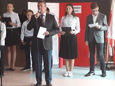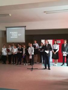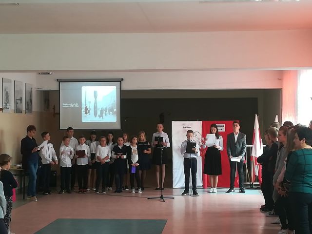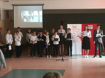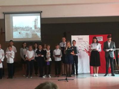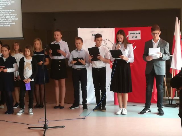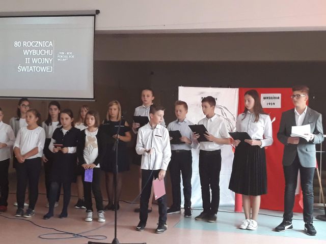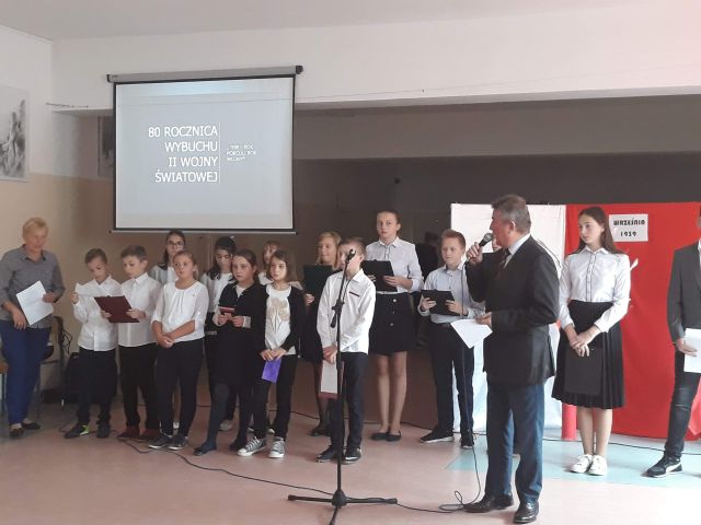 25 września 2019 roku odbyła się w naszej szkole uroczysta akademia upamiętniająca wybuch II wojny światowej, która była największym konfliktem zbrojnym w dziejach świata, a rozpoczęła się w naszej Ojczyźnie, gdy 1 września 1939 roku wojska niemieckie bez wypowiedzenia wojny przekroczyły o świcie na całej niemal długości granice naszego kraju, zaś 17 września rozpoczęła się inwazja sowiecka na nasze ziemie. Te krwawe daty z naszej historii uczcili uczniowie klas piątych i siódmych, recytując wiersze poetów - świadków i uczestników wydarzeń wrześniowych.