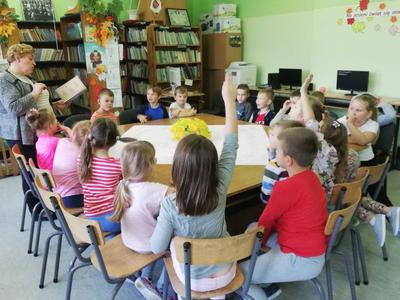 Na koniec spotkania odbył się konkurs zagadek czytanych przez Panią bibliotekarkę.
