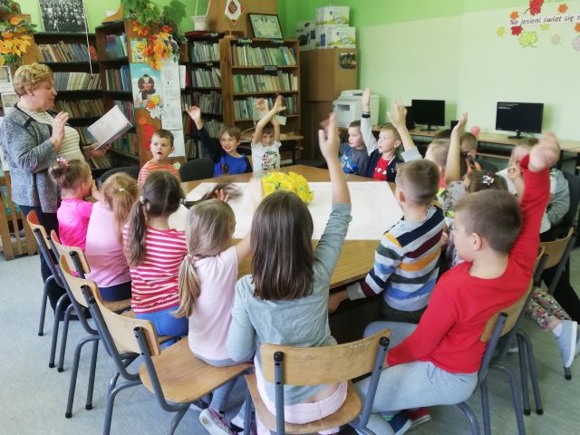 Dnia 22 października bibliotekę szkolną odwiedziła klasa I wraz z wychowawcą. To była lekcja biblioteczna, w czasie której dzieci dowiedziały się jak zostać czytelnikiem biblioteki oraz jakie są zasady wypożyczania książek.