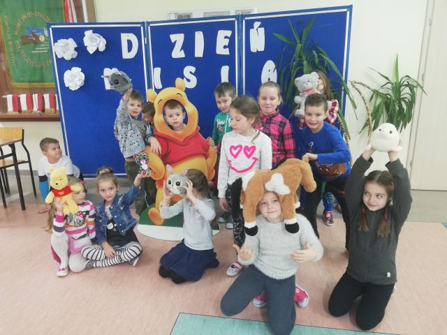 Tego dnia uczniowie do szkły przynieśli swoje ulubione misie. Na korytarzu została przygotowana gazetka z figurą misia, przy której można było zrobić sobie zdjęcie. Jeżeli ktoś chciał zrobić sam misia, mógł go wykonać z ręcznika, pod nadzorem uczennic z SU lub pomalować kolorowankę - sylwetkę misia.
