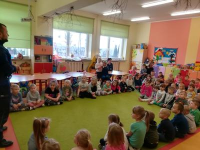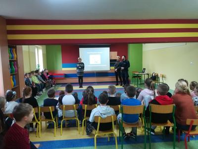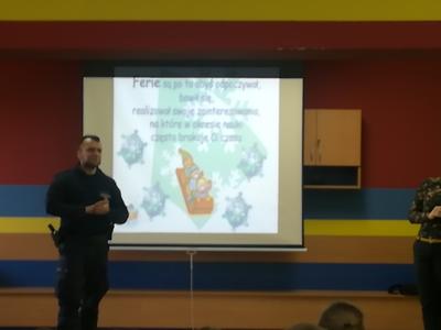 W dniu 15 stycznia odbyło się w naszej szkole spotkanie dzieci przedszkolnych i uczniów klas I-III z przedstawicielami Policji i Powiatowej Stacji Sanitarno-Epidemiologicznej w Wys. Maz. na temat bezpieczeństwa w czasie zimowego wypoczynku oraz profilaktyki grypy. Omówione zostały podstawowe zasady bezpiecznego zachowania podczas zabaw i sportów zimowych, noszenia odblasków po zmierzchu, używania telefonów alarmowych oraz zapobiegania chorobom wirusowym występującym w okresie zimowym. Ponadto Policjanci zachęcali dzieci do wzięcia udziału w konkursie plastyczno-filmowym „Stok nie jest dla bałwanów" organizowanym przez Biuro Prewencji Komendy Głównej Policji oraz w związku ze zbliżającym się Dniem Babci i Dziadka przekazali kolorowanki z radami dotyczącymi bezpieczeństwa seniorów.