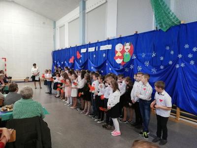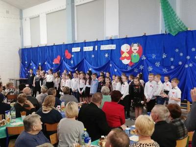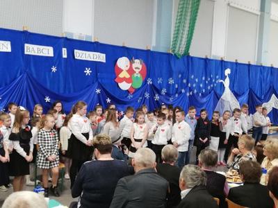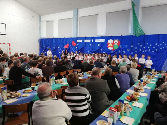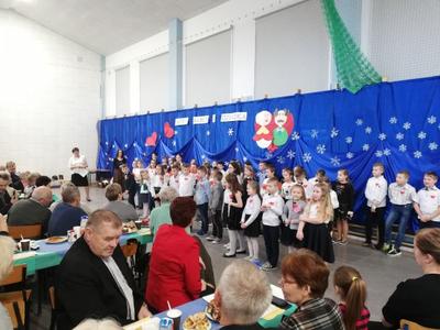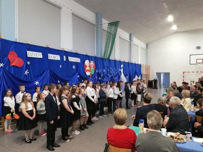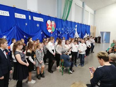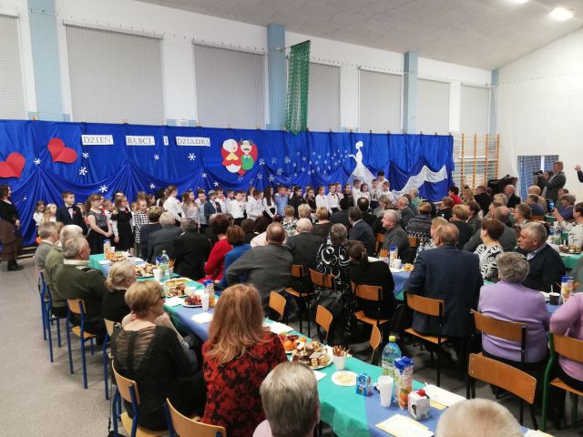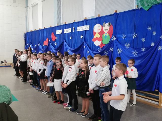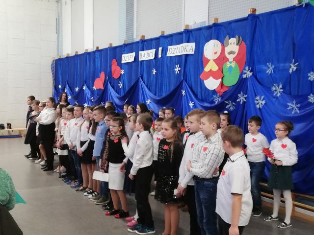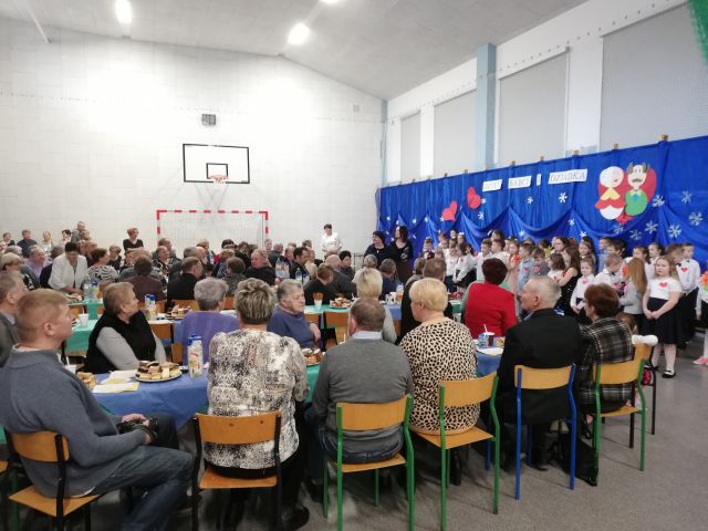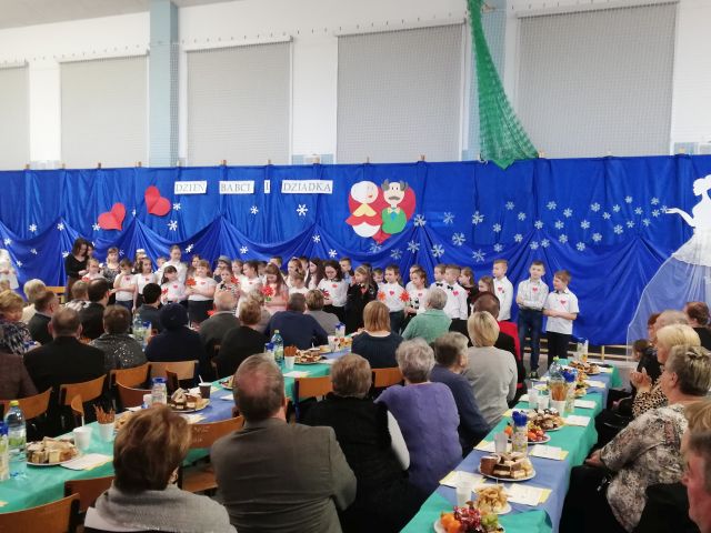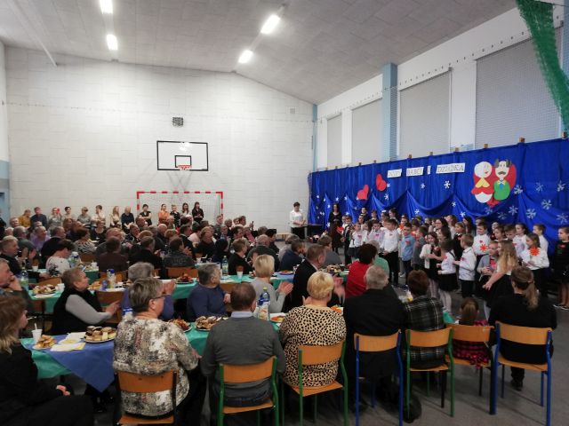 Część artystyczna zakończyła się wspólnym odśpiewaniem 100 lat oraz wręczeniem laurek i drobnych upominków wykonanych przez wnuczęta. Następnie głos zabrał pan dyrektor Jan Kierzkowski, który wskazując na ogromną rolę dziadków w wychowaniu dzieci i ich szczególne miejsce w rodzinie, złożył wszystkim zgromadzonym gościom życzenia. W dalszej części uroczystości goście zostali podjęci słodkim poczęstunkiem przygotowanym przez rodziców. Spotkanie upłynęło w miłej i serdecznej atmosferze. Babcie i dziadkowie opuszczali naszą szkołę ze wzruszeniem, dziękując za miło spędzone chwile.