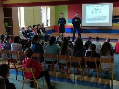 11 lutego 2020 r. obchodzimy kolejną edycję Dnia Bezpiecznego Internetu (DBI). Głównym celem DBI jest inicjowanie i propagowanie działań na rzecz bezpiecznego dostępu dzieci i młodzieży do zasobów internetowych. W związku z tym w naszej szkole odbyły się spotkania uczniów klas IV-VI i dzieci przedszkolnych z przedstawicielami Komendy Powiatowej Policji w Wys. Maz. i Posterunku Policji w Sokołach na temat bezpieczeństwa w Internecie. Podczas spotkań dzieci i młodzież dowiedziały się m.in.: do czego służy Internet i na jakie zagrożenia z nim związane należy uważać, czym jest cyberprzemoc i jak się przed nią bronić, jakie przestępstwa internetowe są coraz częściej popełniane. Policjanci przypomnieli również, iż zgodnie z prawem konto na Facebooku może posiadać osoba, która ukończyła 13 lat i od tego wieku zaczyna się też odpowiedzialność karna nieletniego za popełnione czyny. Ponadto w obecnych czasach ważne jest, aby ilość czasu spędzona z telefonem czy komputerem nie przewyższała czasu, który przeznaczamy na kontakty i rozmowy nawiązywane w realu.
