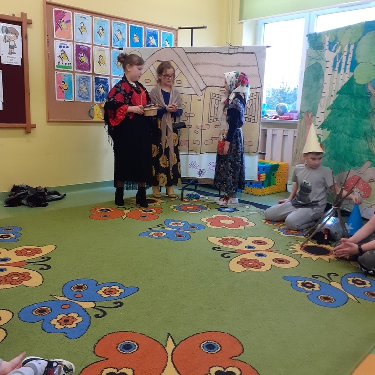 Klasa III wystawiła w oddziale przedszkolnym „Baśń o dwunastu miesiącach”. W role główne wcieliły się: macocha - Ola Kropiewnicka, pasierbica - Marysia Leśniewska, córka - Weronika Stypułkowska. Dziewczynki wspaniale przygotowały swoje charakteryzacje. W pozostałych rolach wystąpili: Damian Roszkowski i Michał Średnicki jako bracia miesiące oraz Zuzia Kierzkowska i Zuzia Gąsowska jako narratorki. Występ bardzo dobrze się udał. Trzecioklasiści i tym razem popisali się zdolnościami aktorskimi. Przedszkolaki w idealnej ciszy oglądały, niektóre aż wstały, aby lepiej widzieć i słyszeć. Po występie okazało się, że nic nie umknęło ich uwadze. Bardzo trafnie rozpoznały i oceniły postacie. Stwierdziły, że nie wolno być złym człowiekiem, a w przedszkolu wszystkie dzieci są dobre.