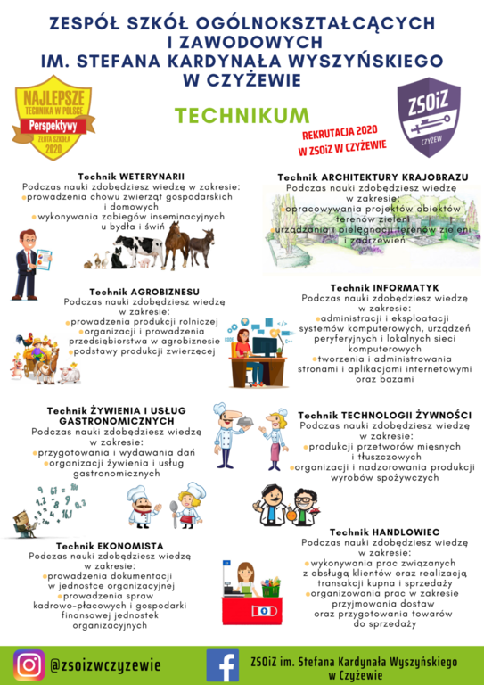 W związku z obecną sytuacją i ograniczonymi możliwościami dotarcia do uczniów klasy VIII, Zespół Szkół Ogólnokształcących i Zawodowych w Czyżewie przedstawia w załączeniu ofertę edukacyjną na rok szkolny 2020/2021.