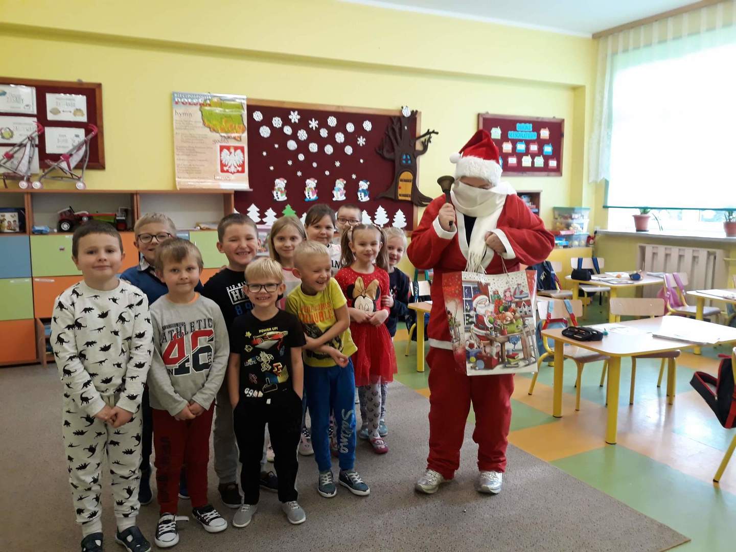 W piątek 4 grudnia 2020r. do oddziału przedszkolnego zawitał Mikołaj. Podarował dzieciom prezenty oraz słodkie upominki. Zapanowała miła atmosfera. Wszystkie dzieci były bardzo zadowolone. Stwierdziły, że to jeden z fajniejszych dni w przedszkolu, bo przecież nie co dzień dostaje się prezenty.
