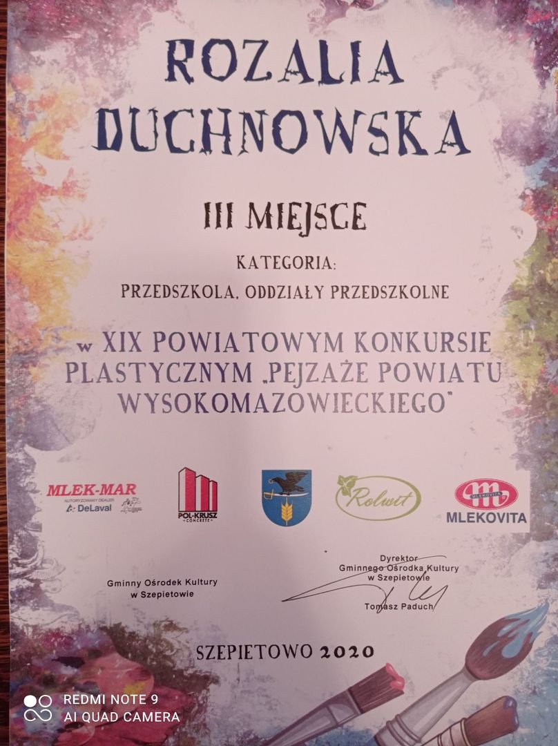 Rozalia Duchnowska, zajęła III miejsce w kategorii przedszkola i oddziały przedszkolne;