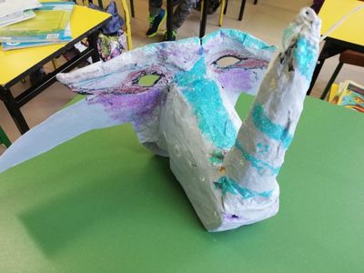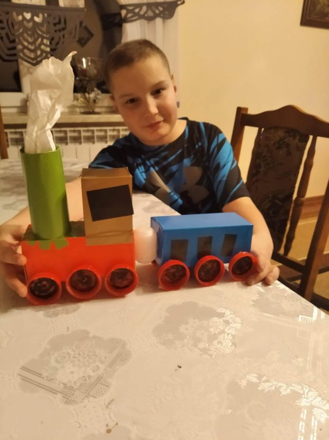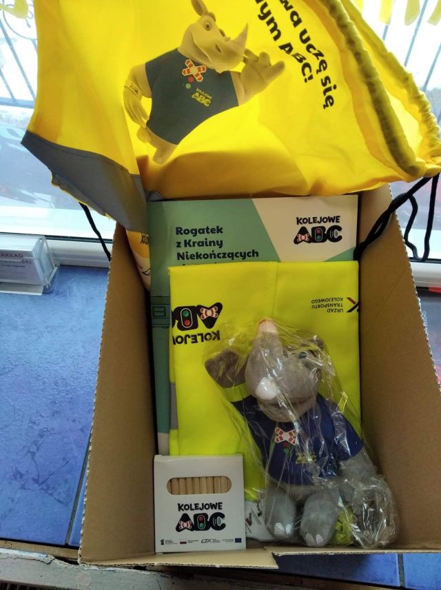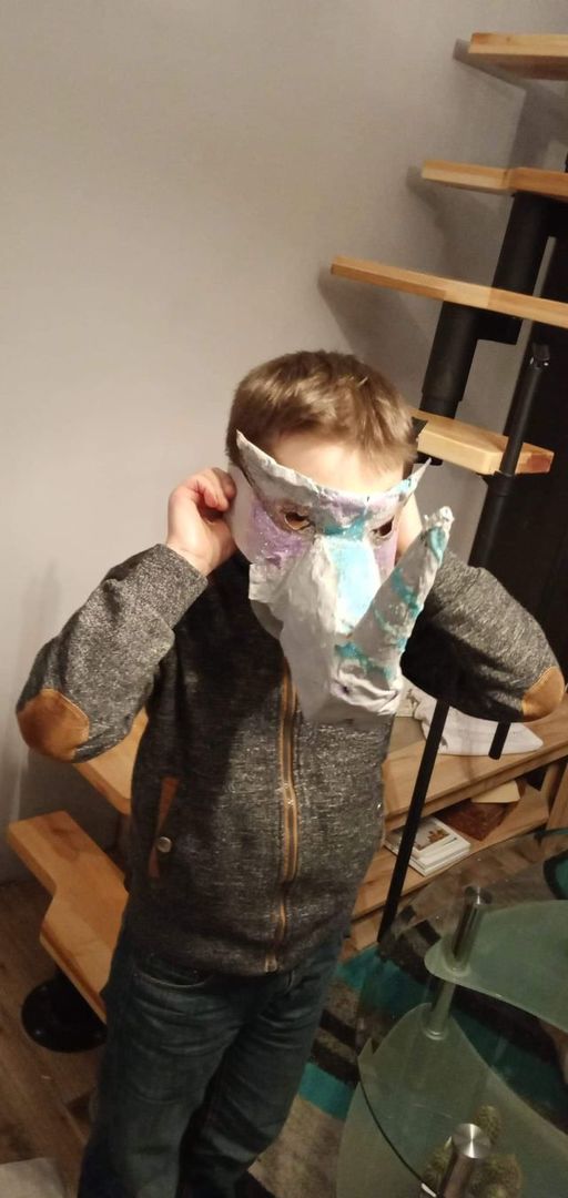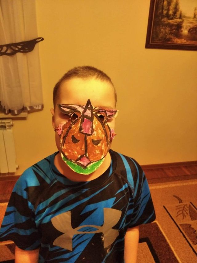 Uczniowie z klasy II w czasie ferii zimowych wzięli udział w konkursie w ramach „Kampanii Kolejowe ABC” i zaprojektowali maski karnawałowe z wizerunkiem papierowego nosorożca oraz kolorowego pociągu.
