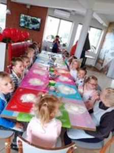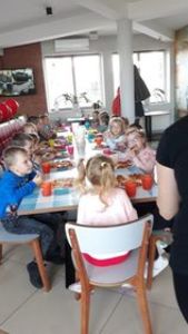 We wtorek 28.09.2021r. dzieci z zerówki wraz z opiekunami wybrały się na wycieczkę do Białegostoku – do Papugarni i na warsztaty kulinarne do pizzerni DaGrasso. Celem wyjazdu do Papugarni było wzbogacenie wiadomości na temat papug oraz poznanie warunków ich życia. Po krótkiej pogawędce, dotyczącej nawyków i sposobu życia tych barwnych ptaków, przedszkolaki mogły je nakarmić oraz dotknąć. Ptaki bardzo chętnie siadały na ramionach, podlatywały do karmienia i pozowały do zdjęć. Wizyta w Papugarni bardzo nam się podobała, ale to był dopiero początek atrakcji. Kolejnym punktem wycieczki były warsztaty kulinarne w pizzerni DaGrasso, na których uczyliśmy się krok po kroku robić wspaniałą włoską pizzę. Wszyscy bardzo się starali: ugniatali, wałkowali, smarowali sosem pomidorowym, samodzielnie układali dodatki. W oczekiwaniu na wypiek spędziliśmy czas w miejscu zabaw dla dzieci. Pizza wszystkim bardzo smakowała. Każdy przedszkolak otrzymał Dyplom Małego Kucharza oraz słodką niespodziankę.