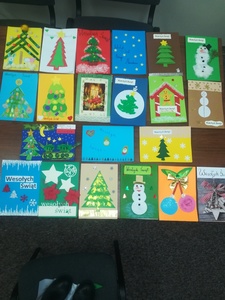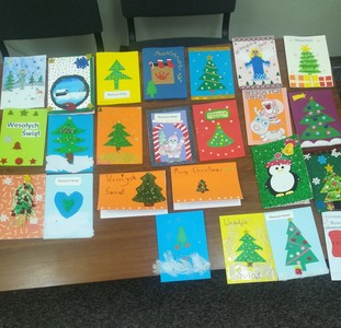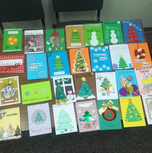 Uczniowie naszej szkoły wykonali pocztówki z życzeniami bożonarodzeniowymi i noworocznymi, które wraz z paczkami świątecznymi przygotowanymi przez władze Gminy Kobylin-Borzymy i KGW Kobylińskie Maczki trafią do służb mundurowych na wschodniej granicy. Oprócz świątecznych życzeń na kartach nie zabrakło podziękowań i wyrazów wdzięczności za obronę polskiej granicy i zapewnienie bezpieczeństwa naszej Ojczyźnie. Powyższe działanie wpisuje się w akcję społeczną "Murem za Polskim Mundurem", której celem jest dodanie otuchy i wsparcia naszym żołnierzom, pełniącym dzień i noc służbę na granicy i strzegącym jej przed napływem nielegalnych migrantów.
