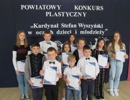zdobyli II miejsca w swoich kategoriach wiekowych w Powiatowym Konkursie Plastycznym ,,Kardynał Stefan Wyszyński w oczach dzieci i młodzieży”.