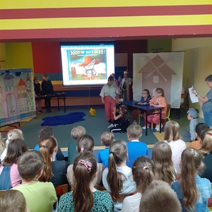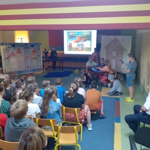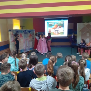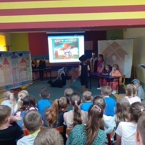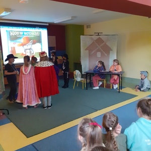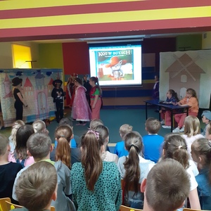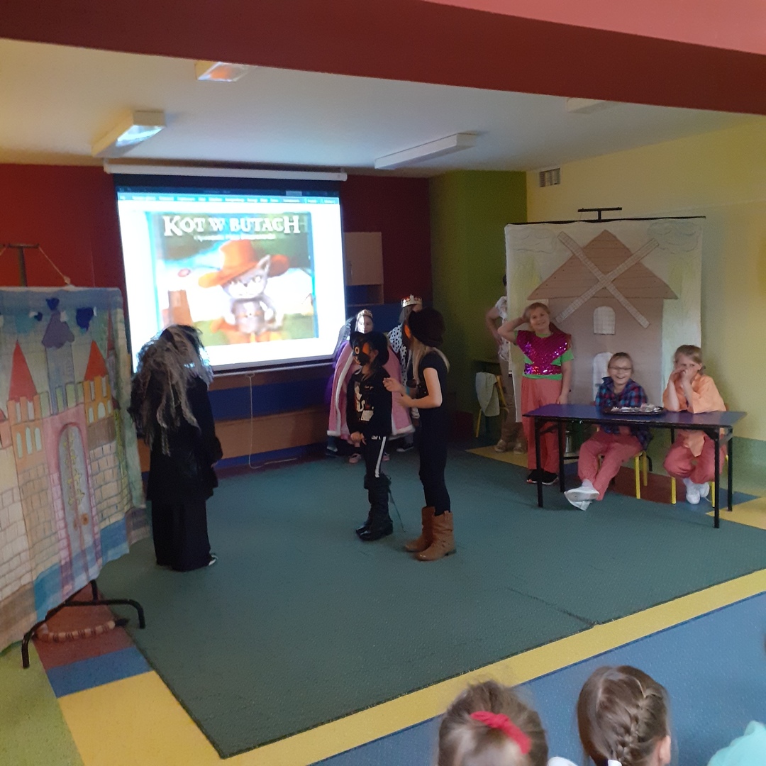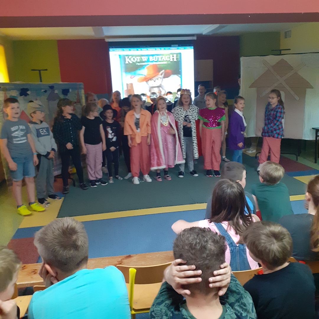 Klasa II przygotowała inscenizację baśni pt.: „Kot w butach” i przedstawiła ją 14 czerwca 2022 roku w świetlicy szkolnej.