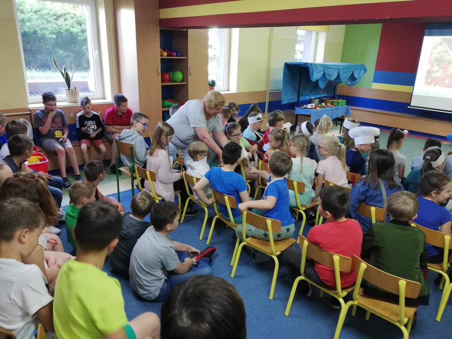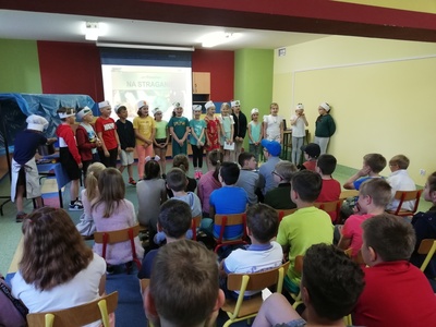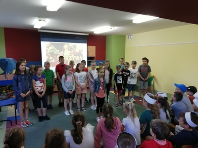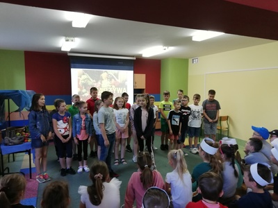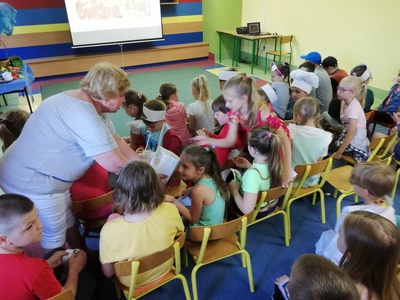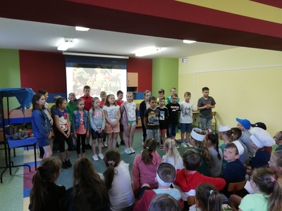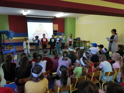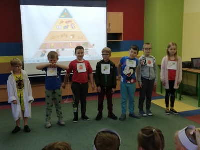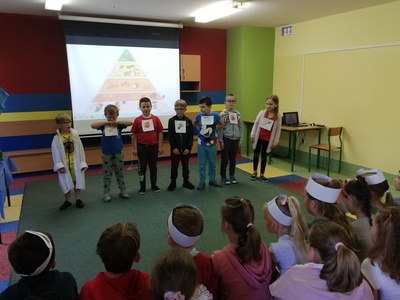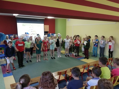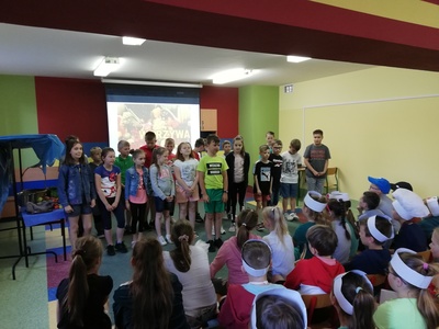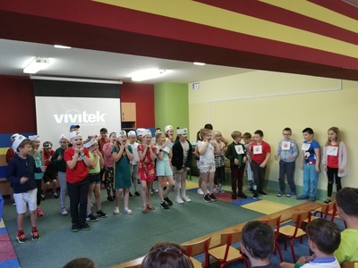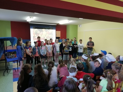 W naszej szkole 15 czerwca 2022 roku został podsumowany Biblioteczny Konkurs pod hasłem ,,WITAMINKI, WITAMINKI DLA CHŁOPCZYKA I DZIEWCZYNKI…. czyli WARZYWA I OWOCE W LITERATURZE". Owoce, warzywa i mleko, to podstawa zdrowego żywienia. W szkole staramy się przekazywać uczniom wiedzę o prawidłowych i zdrowych nawykach żywieniowych. Dzieci biorą udział w różnych akcjach, przedsięwzięciach np.: ,,Owoce i warzywa w szkole" , ,,Szklanka mleka". Konkurs cieszył się dużym zainteresowaniem. Udział wzięło w nim 56 dzieci z klas: I, II i III. Dzieci wykonały piękne inscenizacje utworów literackich propagujących zdrowe żywienie. Występy uczniów mogli podziwiać uczniowie, nauczyciele, dyrekcja szkoły. Wszyscy uczniowie klas I-III zostali nagrodzeni słodkimi upominkami.