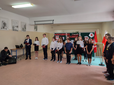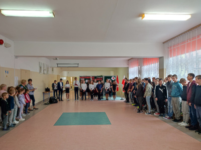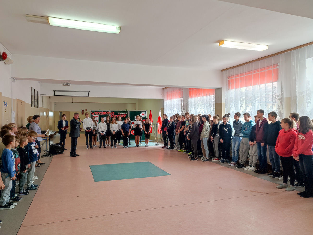 We wrześniu obchodzimy dwie ważne rocznice związane z historią naszego kraju: 1 września 1939 - wybuch II wojny światowej i 17 września - agresja sowiecka na Polskę. W związku z tym uczniowie klas I-VIII wraz z nauczycielami zgromadzili się na apelu upamiętniającym te dwa tragiczne wydarzenia. Montaż słowno-muzyczny wprowadził wszystkich w chwile zadumy i refleksji na obecną rzeczywistością. Choć wydaje się, że wojna to czasy odległe, musimy pamiętać, że na świecie wciąż toczą się wojny, codziennie giną setki niewinnych ludzi.