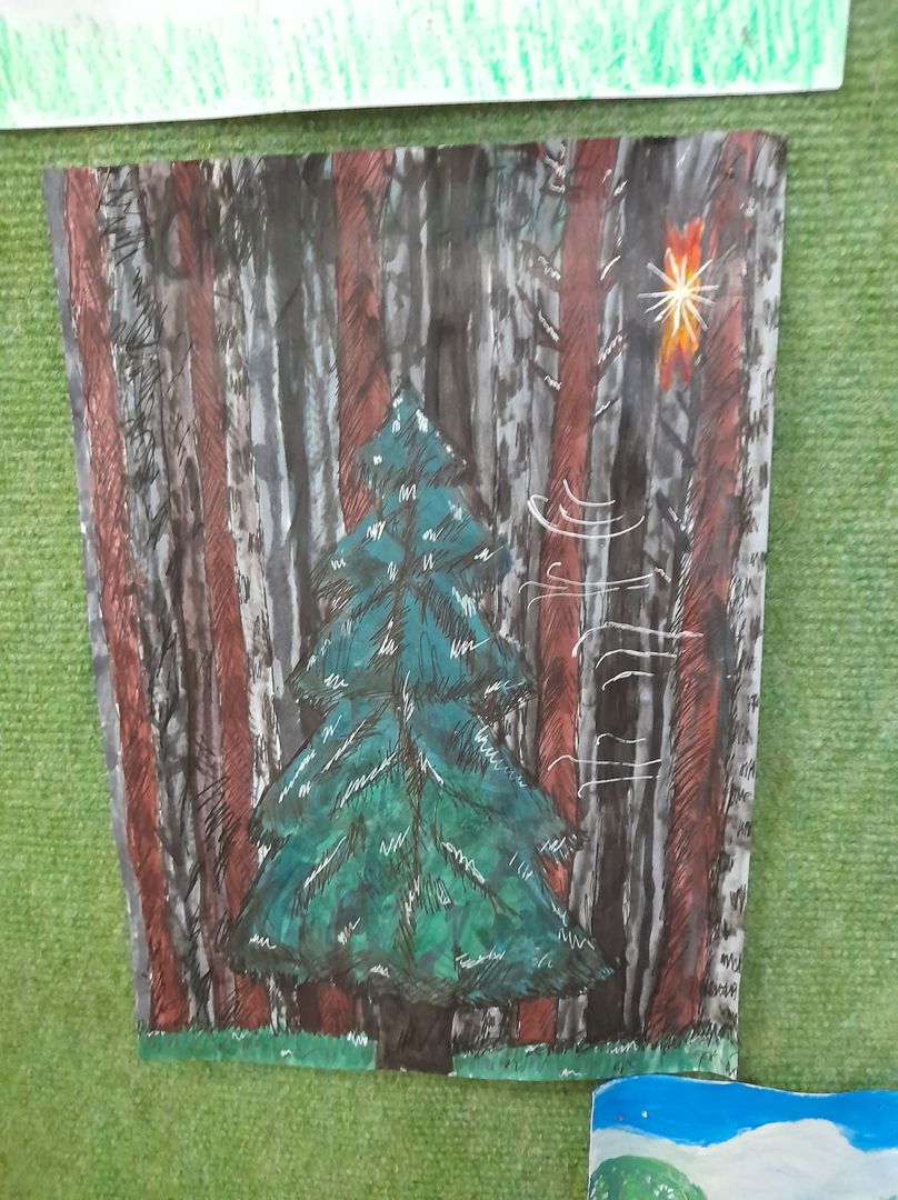 Magda Sienicka kl.III za pracę „Choinka w lesie”