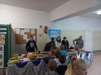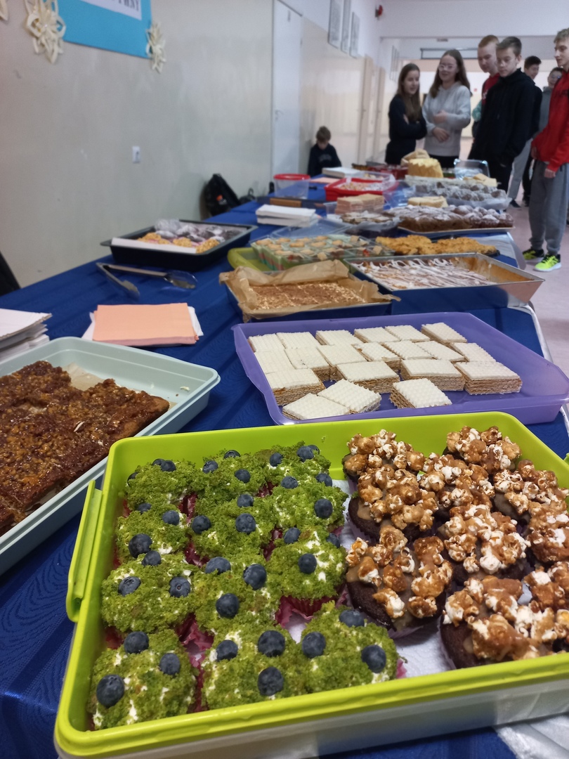 Dnia 2 grudnia 2022 roku w naszej szkole zorganizowano akcję charytatywną . Dzięki dobroczynności i zaangażowaniu rodziców wydarzenie przebiegło bardzo sprawnie i efektownie. Ilość wypieków przygotowanych do sprzedaży przeszła najśmielsze oczekiwania organizatorów. Serdecznie dziękujemy zaangażowanym rodzicom, którzy nie tylko dostarczyli słodkości ale także byli najszczodrzejszymi klientami. Z pomocą dołączył samorząd uczniowski.