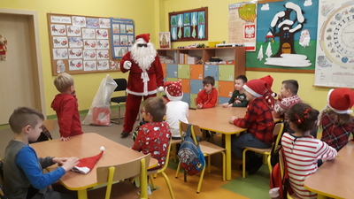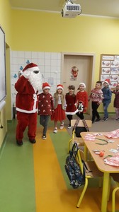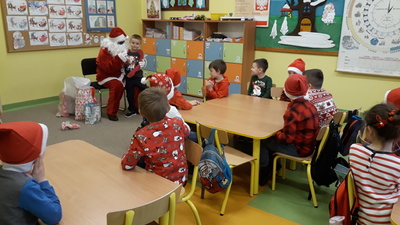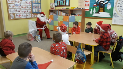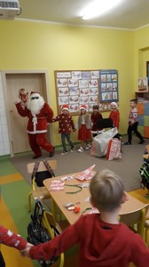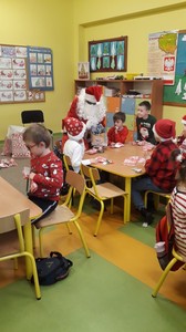 6 grudnia obchodziliśmy Mikołajki. Już od samego rana dzieci czekały na niezwykłego gościa – Świętego Mikołaja. Na jego cześć każde dziecko ubrało się odświętnie. Swoje wejście jak na Mikołaja przystało w świetle dzwonka rozpoczął niezawodnym ho ho ho. Dzieci z radością przywitały przybyłego gościa piosenką o Mikołaju. Następnie Mikołaj rozdał wszystkim prezenty. Mimo zmęczenia, Mikołaj pobawił się jeszcze z dziećmi w ich ulubioną zabawę. Oprócz pełnego worka prezentów Mikołaj przywiózł dużo uśmiechu i radości. Dzień ten na długo pozostanie w pamięci u wszystkich dzieci, niektórzy już się nie mogą doczekać jego kolejnej wizyty.