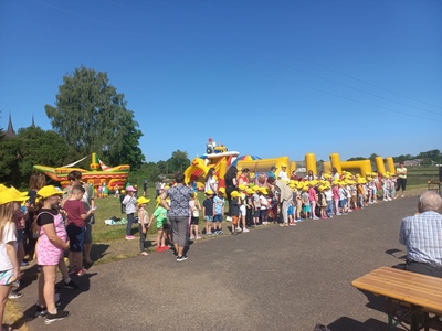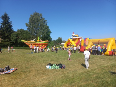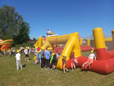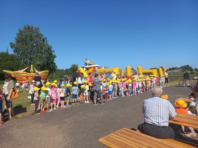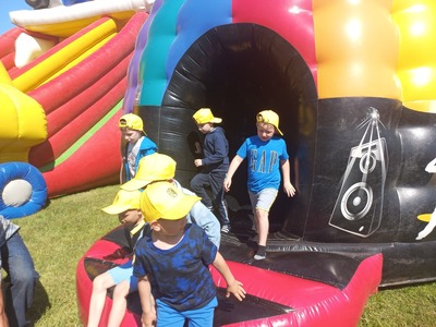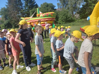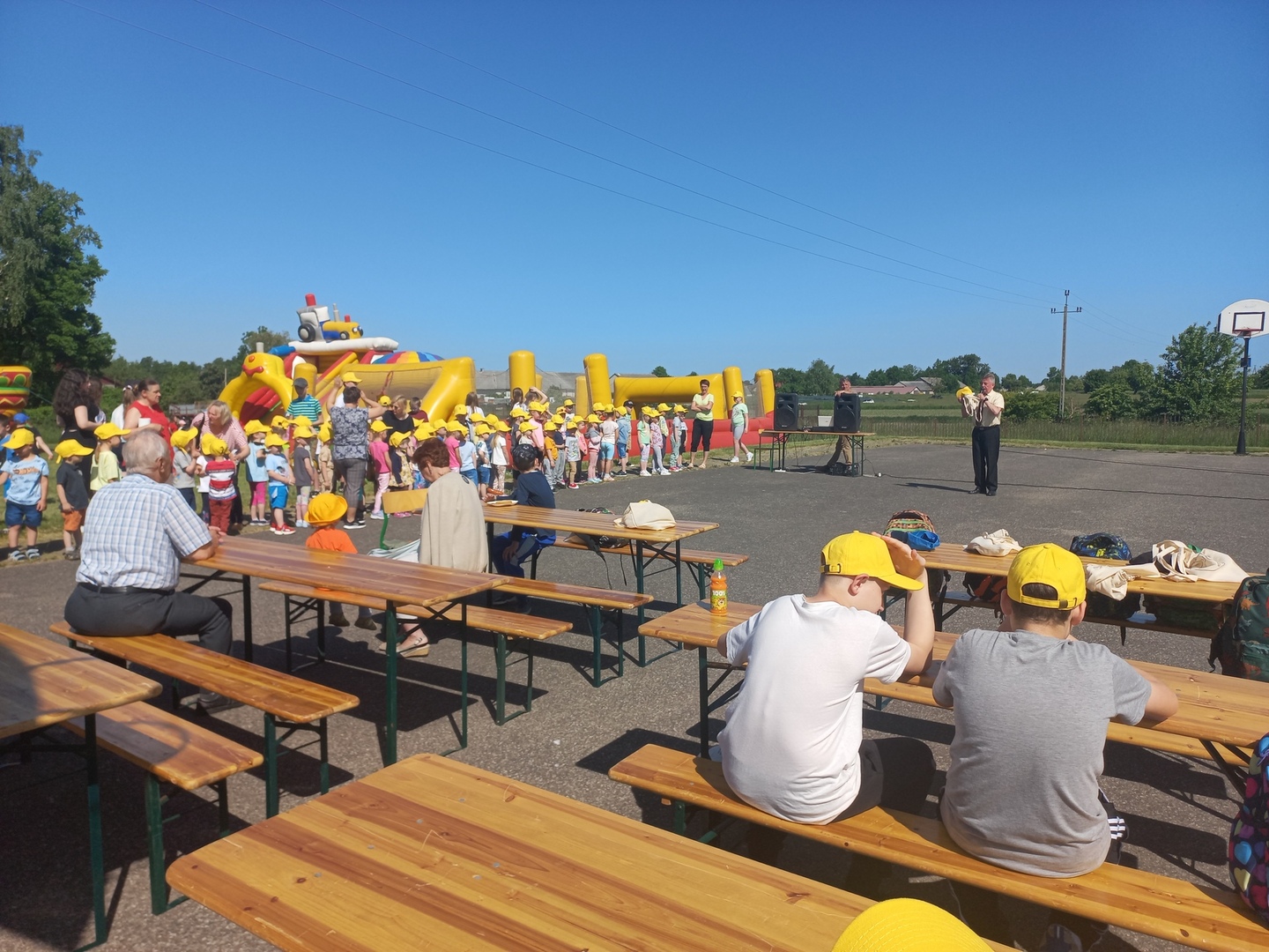 W tym roku uśmiechów na twarzy dzieci w dniu ich święta nie brakowało... Dzień Dziecka upłynął w naszej szkole pod znakiem słonecznej pogody, wspaniałej zabawy, wielu atrakcji i niespodzianek. Już na rozpoczęcie pikniku przedszkolaki i uczniowie wraz z życzeniami od Wójta i pracowników Gminy Kobylin-Borzymy otrzymali upominki w postaci czapek chroniących przed słońcem, długopisów i ekologicznych torebek. Rada Rodziców serwowała pyszne przekąski tzn. kiełbaski z grilla, watę cukrową i  popcorn oraz zorganizowała loterię fantową. Pan Piotr Babiński - właściciel pobliskiego Sklepu Spożywczo-Przemysłowego - ufundował  na ochłodę lody. Wielkim zainteresowaniem wszystkich uczestników, i młodszych i tych starszych, cieszyły się "dmuchańce" tzn. Zjeżdżalnia, Boisko, Plac Zabaw Statek oraz Zamek Dyskoteka, których sponsorem była Gminna Komisja Rozwiązywania Problemów Alkoholowych w Kobylinie-Borzymach.