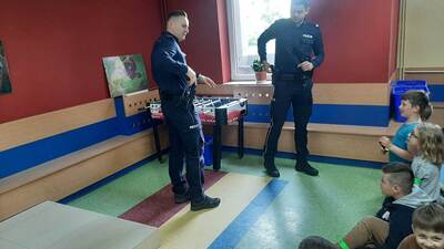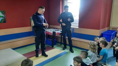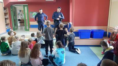 W dniu 22 maja br. uczniowie klas I-III uczestniczyli w spotkaniu profilaktycznym z dzielnicowymi Posterunku Policji w Sokołach. Tematyka spotkania dotyczyła przede wszystkim zgadnień związanych z szeroko rozumianym bezpieczeństwem oraz z specyfiką zawodu policjanta. Na zakończenie wszystkie dzieci otrzymały odblaski, które należy nosić w terenie po zmroku.