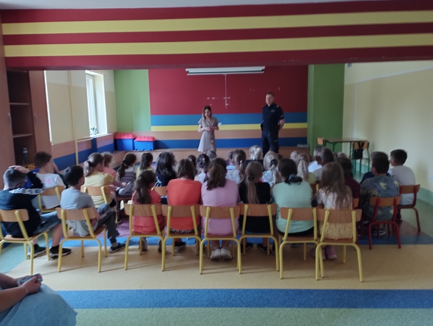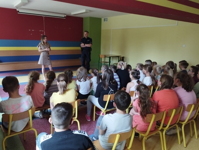 W dniu 20 czerwca br. odbyło się spotkanie uczniów klas I-III z przedstawicielami Komendy Powiatowej Policji w Wys. Maz oraz Posterunku Policji w Sokołach pod hasłem "Bezpieczne wakacje 2023". Podczas spotkania omówione zostały zasady bezpiecznego wypoczynku podczas zbliżających się wakacji. Dzieci usłyszały m.in. jak bezpiecznie poruszać się po drogach, wypoczywać nad wodą, korzystać z Internetu oraz jak zachować się, gdy zaczepia je ktoś obcy. Więcej szczegółów na temat bezpiecznego wypoczynku znajduje się w Wakacyjnym ABC Bezpieczeństwa