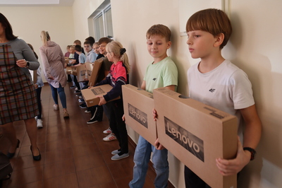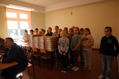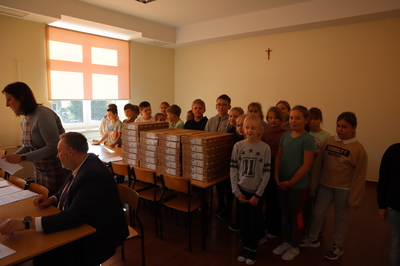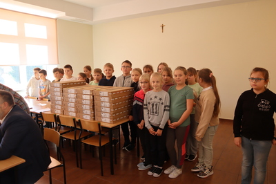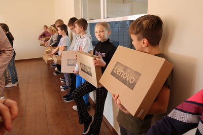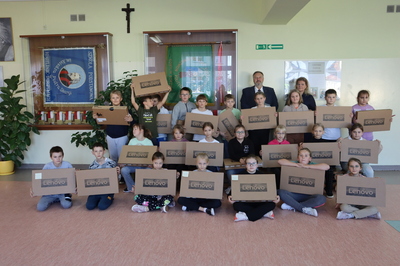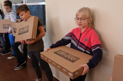 W dniu 23 października br. odbyło się w naszej szkole przekazanie bezpłatnych laptopów uczniom klasy IV z udziałem Wójta Gminy - Pana Dariusz Sikorskiego - w ramach realizacji rządowego programu Ministerstwa Cyfryzacji "Laptop dla ucznia". Celem tej inicjatywy jest przede wszystkim wyrównywanie szans edukacyjnych dzieci w rozwoju kompetencji cyfrowych oraz rozwijanie ich talentów i zainteresowań. Na podstawie podpisanych umów laptopy stały się własnością rodziców uczniów i będą ułatwiały nabywanie wiedzy i umiejętności na kolejnych etapach edukacji. Życzymy naszym czwartoklasistom owocnego i bezpiecznego korzystania z otrzymanego sprzętu oraz sukcesów w nauce!