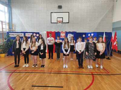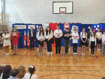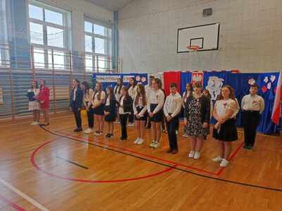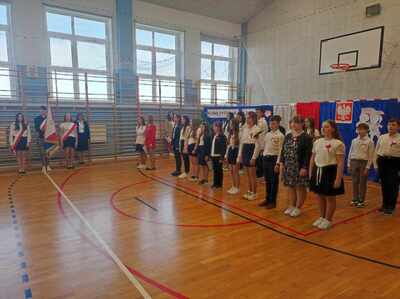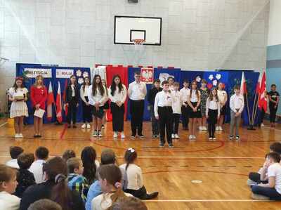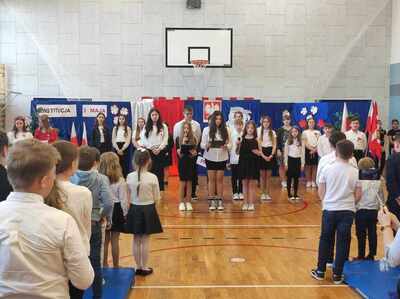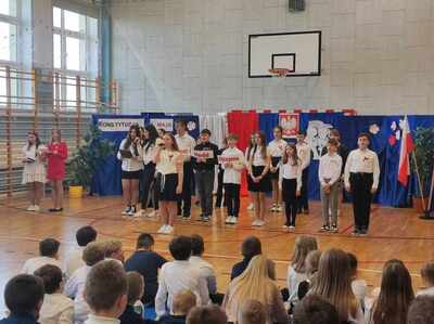 30 kwietnia uczniowie naszej szkoły uczcili montażem słowno-muzycznym 233 rocznicę uchwalenia KONSTYTUCJI 3 MAJA, czyli pierwszego zbioru najważniejszych praw