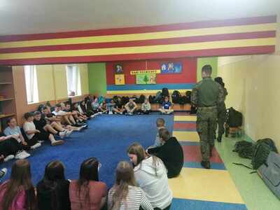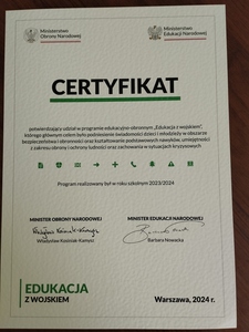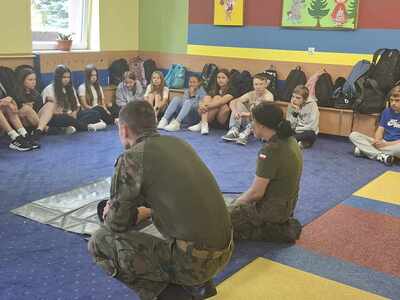 W dniu 11 czerwca w naszej szkole odbyły się 3-lekcyjne zajęcia dla uczniów klas VI-VII przeprowadzone przez żołnierzy 18 Białostockiego Pułku Rozpoznawczego w ramach programu edukacyjno-obronnego "Edukacja z wojskiem" realizowanego we współdziałaniu Ministerstwa Edukacji Narodowej i Ministerstwa Obrony Narodowej. Głównym celem i założeniem programu jest podniesienie świadomości dzieci i młodzieży w obszarze bezpieczeństwa i obronności oraz kształtowanie podstawowych nawyków i umiejętności z zakresu obrony i ochrony ludności oraz zachowania w sytuacjach kryzysowych.