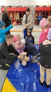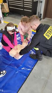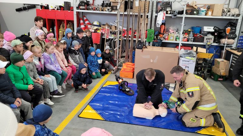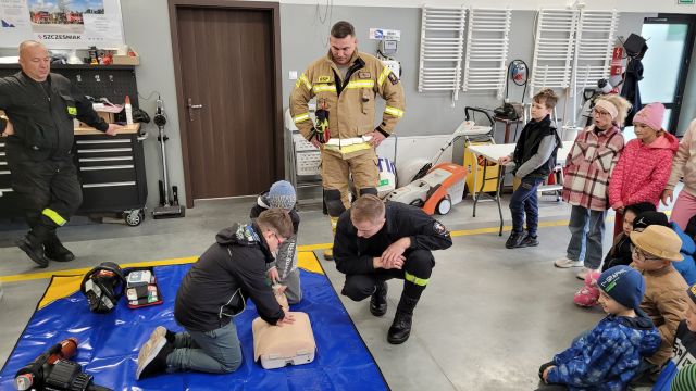 Najpierw dzieci dowiedziały się jak sprawdzić czynności życiowe u osoby poszkodowanej i jak wykonać resuscytację krążeniowo-oddechową. Wszyscy chętni uczniowie sprawdzili swoje siły podczas wykonywania masażu serca na fantomie szkoleniowym.