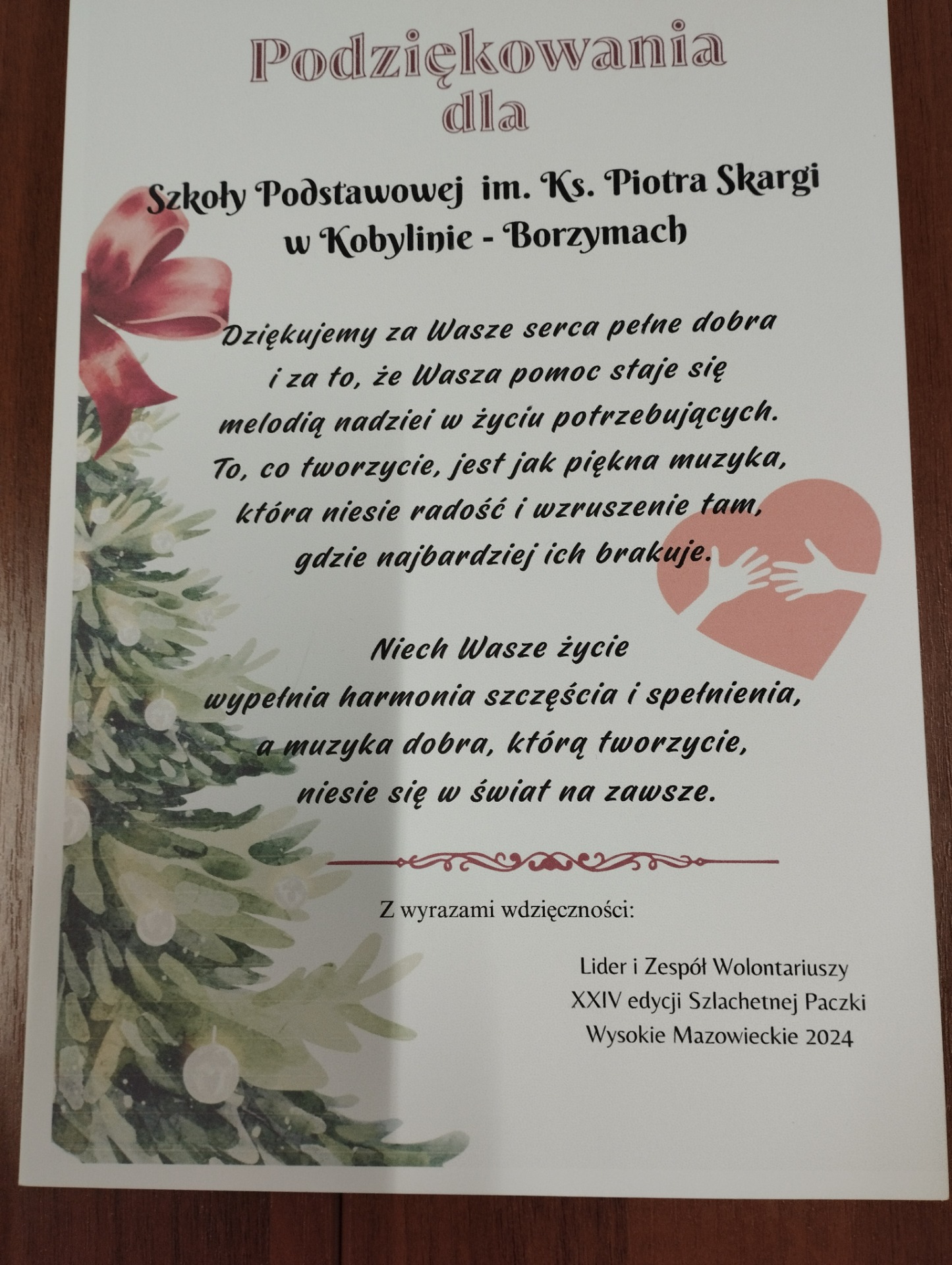 Podziękowanie za wsparcie akcji Szlachetna Paczka 2024