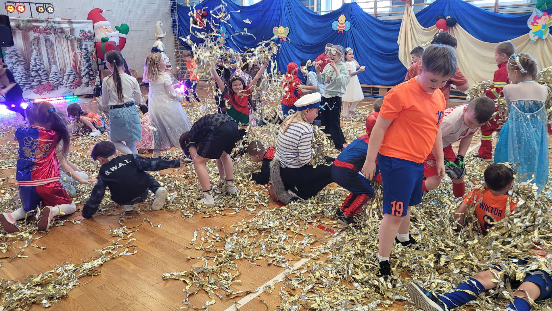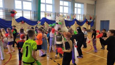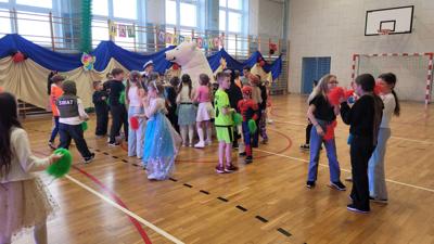 Tak też było u nas, w dniu 19 lutego 2025 roku odbył się bal karnawałowy dla uczniów klas I - III. Na sali gimnastycznej, pojawiły się postacie z różnych bajek i filmów. Szalone tańce i animacje, zabawy ruchowe, tańce z maskotkami, magiczny pokaz konfetti, to tylko niektóre atrakcje stworzone przez animatorów ze studia artystycznego „Anima”. W trakcie balu był również czas na słodką przekąskę przygotowaną przez rodziców.