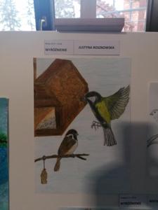 Uczennica klasy siódmej Justyna Roszkowska otrzymała wyróżnienie w konkursie plastycznym pt.: „Ptaki przy karmniku” zorganizowanym przez Narwiański Park Narodowy.