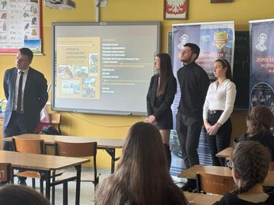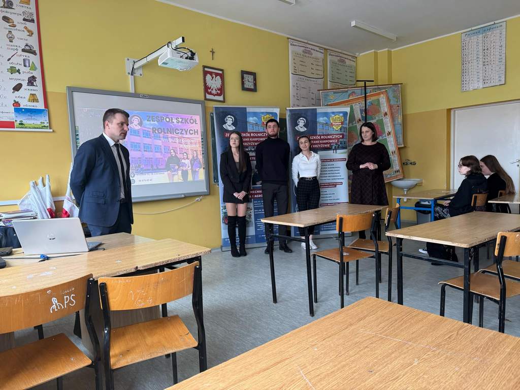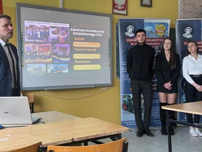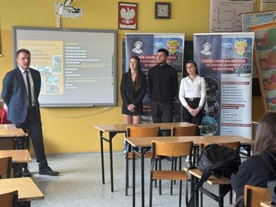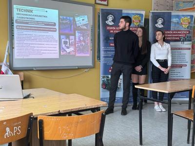W dniu 24 marca br. odbyło się spotkanie uczniów klasy VIII naszej szkoły z przedstawicielami Zespołu Szkół Rolniczych w Krzyżewie. Podczas spotkania rezprezentanci uczniów z Dyrektorem Szkoły - Panem Rafałem Iwanem na czele - bardzo ciekawie przedstawili ofertę edukacyjną na rok szkolny 2025/2026 oraz najciekawsze wydarzenia z życia placówki. Po szczegóły zapraszamy na stronę internetową: