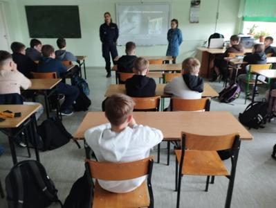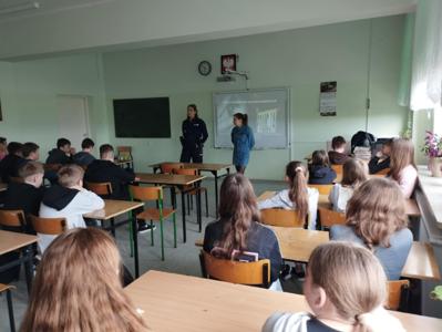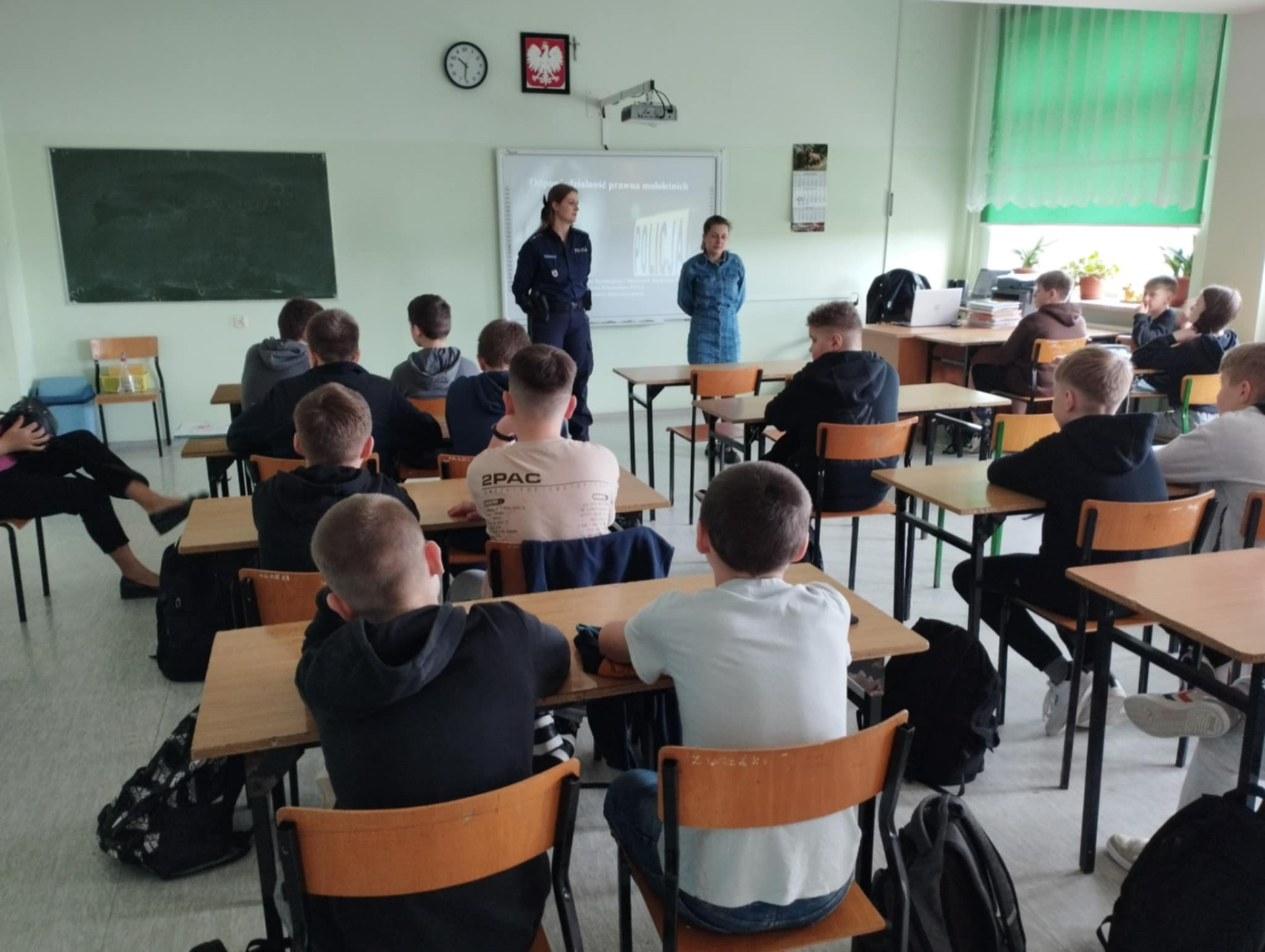 W dniu 14 kwietnia br. uczniowie klasy VI naszej szkoły uczestniczyli w spotkaniu z przedstawicielami Komendy Powiatowej Policji z Wys. Maz. Celem spotkania było przekazanie naszym uczniom informacji jak zmienia się odpowiedzialność prawna nieletnich po ukończeniu 13 roku życia. Prowadzące podały przykłady takiej odpowiedzialności w przypadku łamania prawa i niestosowania się do obowiązujących norm społecznych. Ponadto uczniowie dowiedzieli się, jak unikać zagrożeń związanych z nieodpowiedzialnym korzystaniem z internetu oraz jakie zachowania są w sieci zabronione.