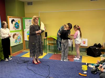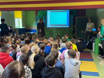 W trakcie wspólnej zabawy uczniowie obejrzeli krótki film, z którego dowiedzieli się jak można pomóc naszej planecie wprowadzając w życie codzienne proekologiczne nawyki.